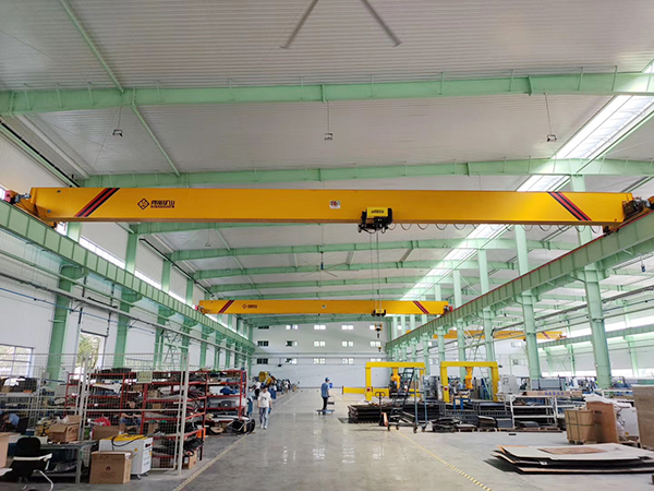 單梁懸掛起重機(jī)是橫架于車間、倉(cāng)庫(kù)和料場(chǎng)上空進(jìn)行物料吊運(yùn)的起重設(shè)備。由于它的兩端坐落在高大的水泥柱或者金屬支架上,形狀似橋。橋式起重機(jī)的橋架沿鋪設(shè)在兩側(cè)高架上的軌道縱向運(yùn)行,可以充分利用橋架下面的空間吊運(yùn)物料,不受地面設(shè)備的阻礙。